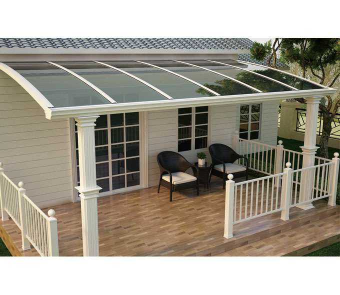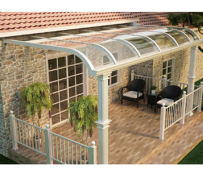 开元网页版-开元(中国)雨棚(A5款窗棚、露台棚)系列产品是高强度铝合金和聚碳酸酯板(耐力板)的结合。主体结构全部采用高品质、高强度铝合金材料精加工而成,具备的氧化保护能力,不生锈,表面特殊的工艺处理,大大提高了雨棚的使用寿命。顶棚耐力板的运用,能遮挡阳光中的有害紫外线对地板、墙壁、窗帘等损害;同时阻挡夏日毒辣的太阳,可以控制室内温度的上升,冷气效果也大幅度提高,从而达到节约能源的作用。
