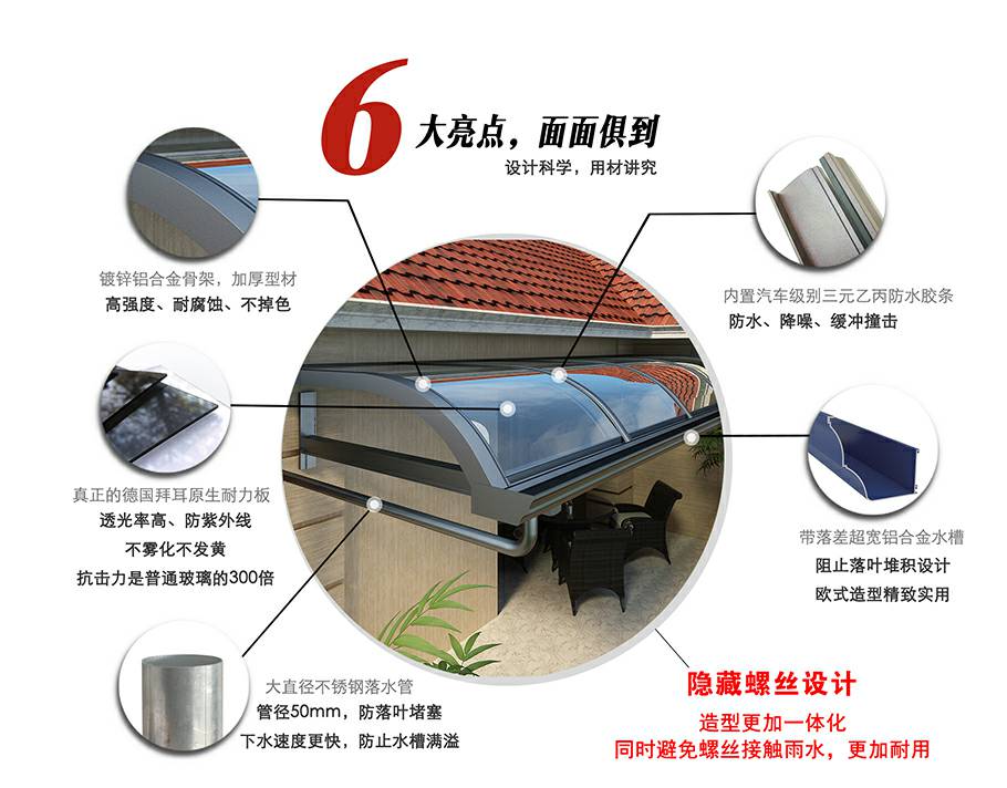 加强型铝合金骨架,防止紫外线进口耐力板,不变形不变色,历久弥新